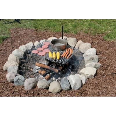 - Hinged cooking grid for easy refueling; aluminum side and bottom trays